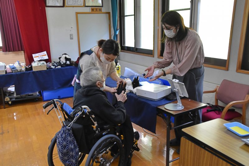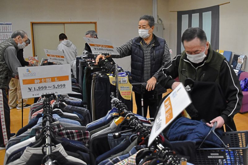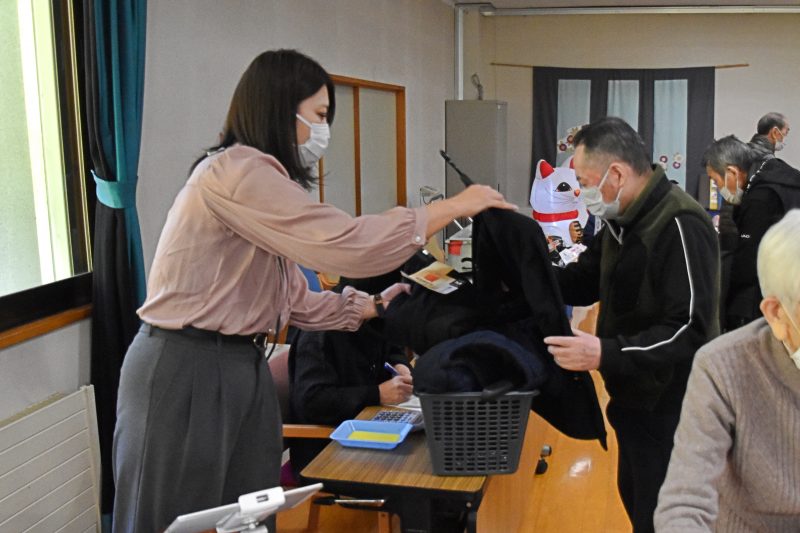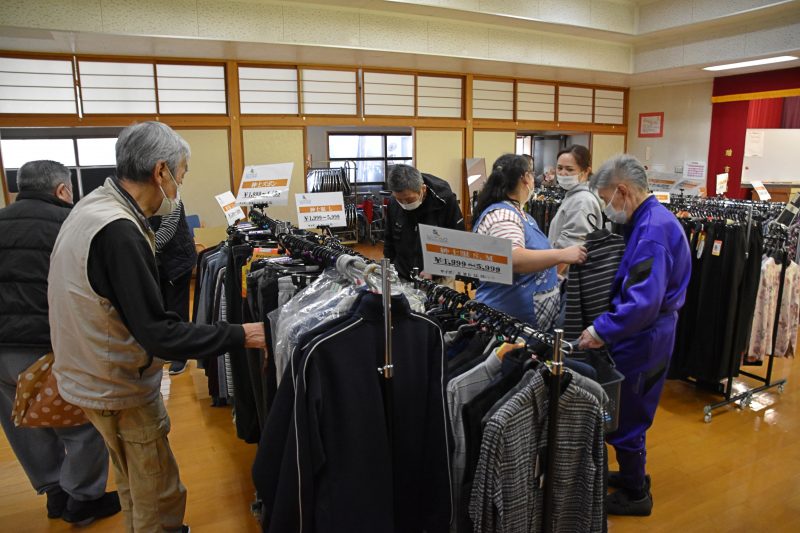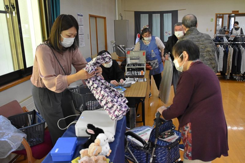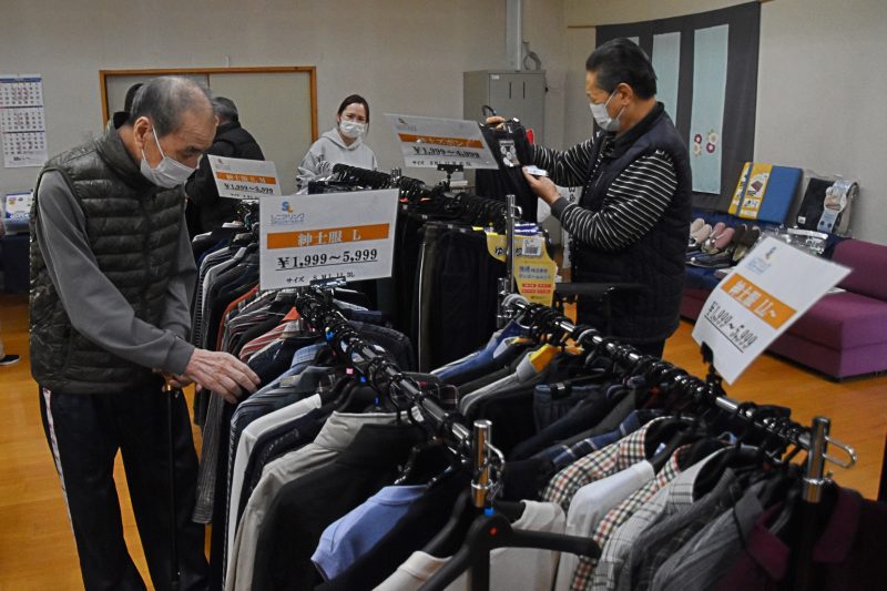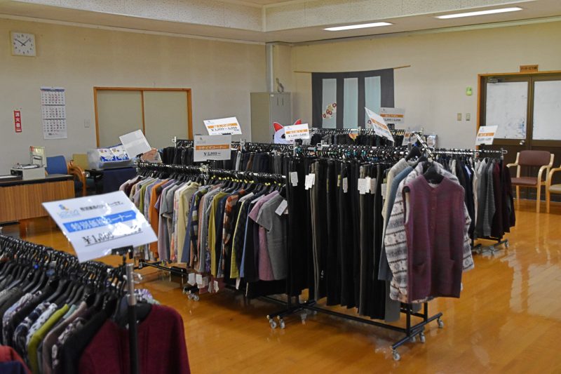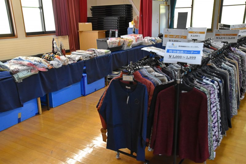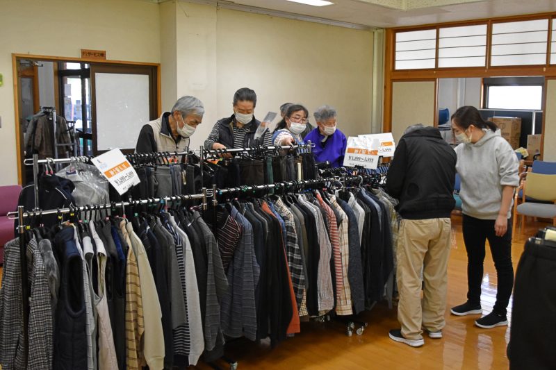10月17日、福島県福島市から衣類の訪問販売をしている「シニアリンク デパート」さんに来て頂きました。こちらは施設からの依頼で訪問してくれるショップで、高齢者向けファッションに特化しています。商品を直接手に取り、自分に似合うかどうか合わせることもできるので、利用者の皆さんはじっくりと商品を品定めすることができます。