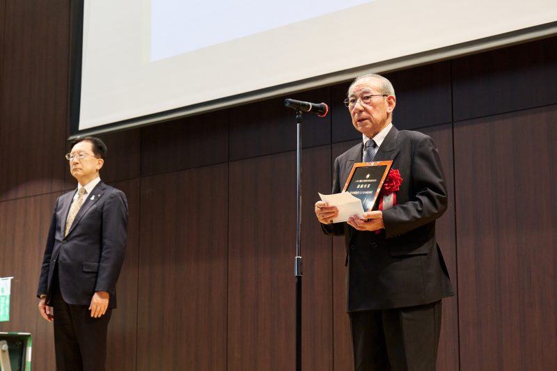 授賞式では、達増岩手県知事から小時田理事長に表彰盾が贈呈され、「このような素晴らしい賞をいただき、全職員で喜んでいる。全職員で取り組んだ成果が評価された。これからも努力を惜しまず、働き方改革を進めると同時に地域に貢献できるよう取り組んでいく。」と笑顔であいさつ。